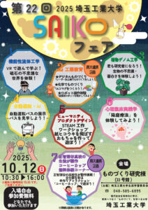 10月12日(日)「SAIKOフェア」を同時開催! 投稿日 2025年9月18日 著者 秋桜祭実行委員 カテゴリー お知らせ 10月12日(日)「SAIKOフェア」を同時開催! 第22回SAIKOフェアチラシ(PDFファイル)
